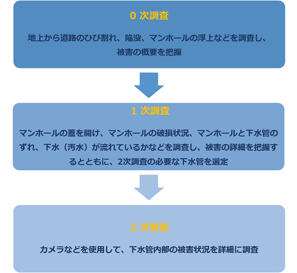 地震発生直後の 0 次調査として、マニュアルに沿ったマンホールおよびその周辺道路の被害情報の調査を行います。本テンプレートは、「下水道の地震対策マニュアル 出典:日本下水道協会」および「下水道管路施設 災害復旧支援マニュアル 出典:日本下水道管路管理業協会」を参考とし、管路の緊急調査をデジタル処理で行う目的で構成されています。