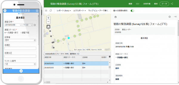 本テンプレートは、管路情報を収集するための調査フォームを構築するための、Survey123 for ArcGIS 対応の XLSForm ファイルを提供します。既存の管路データを調査に使用することもできますし、新規にマンホールの位置を現地で登録することもできます。