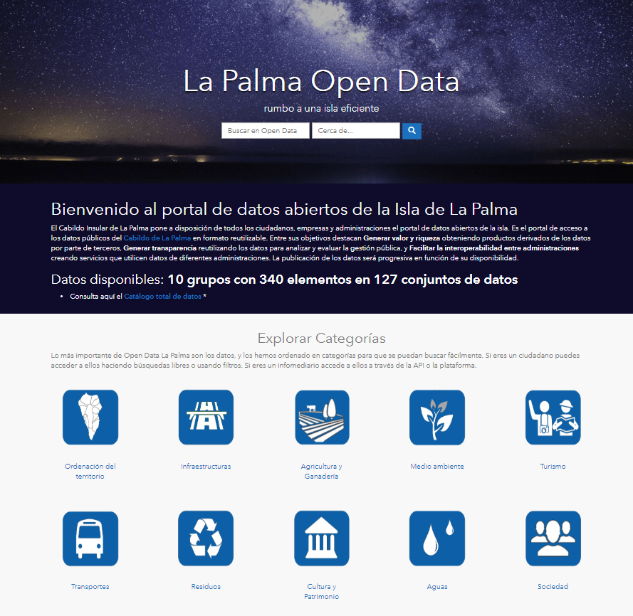 ArcGIS のユーザーである、カナリア諸島にあるラ・パルマ島では ArcGIS で構築した Open Data ポータルを運営しています。また偶然にも、ラ・パルマ島は映画の中で舞台となった、架空の島イスラ・ヌブラル島と同じ形をしているのです。