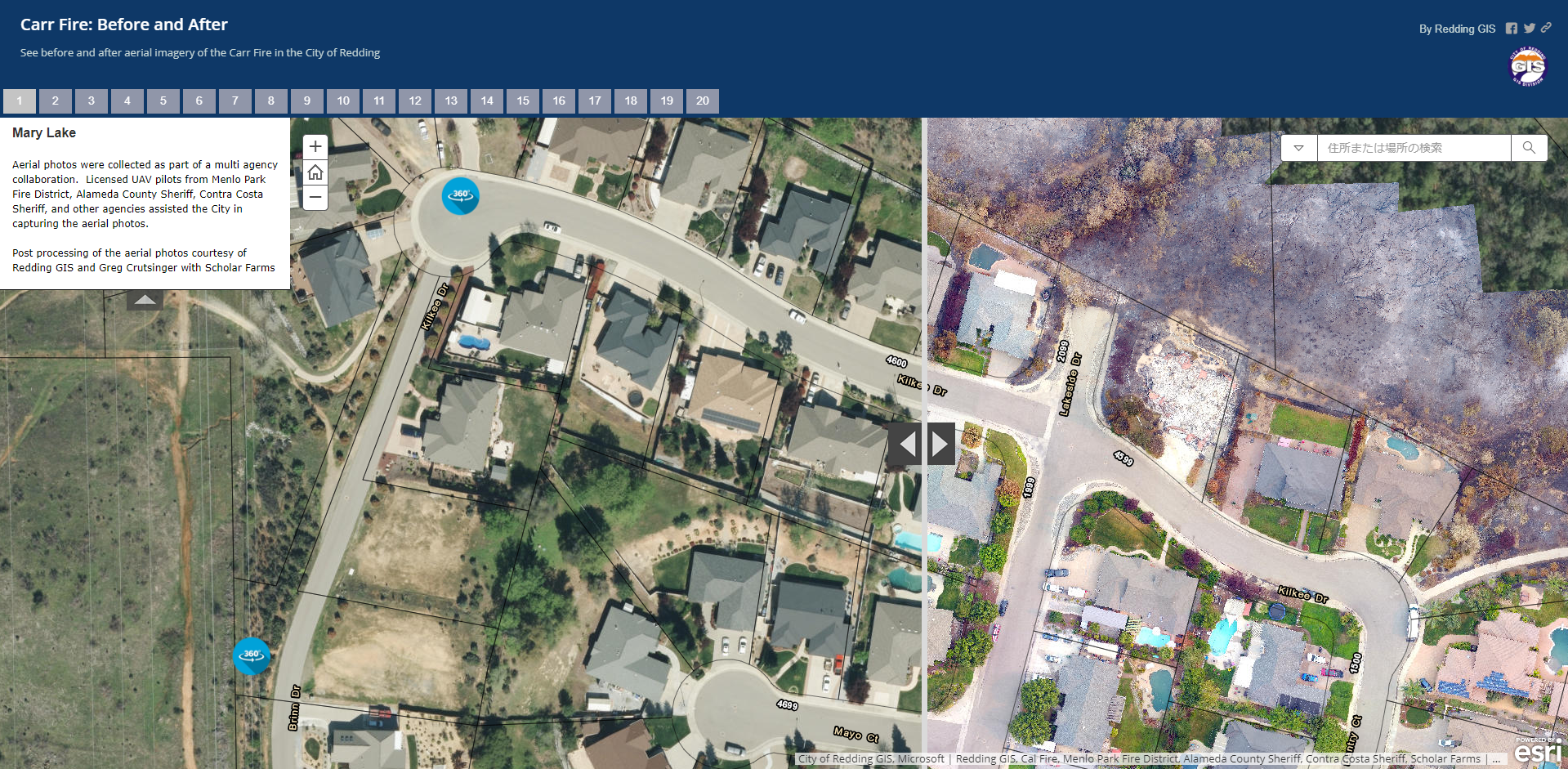 今なお猛威をふるっているカリフォルニア州の山火事の1つ、カー火災(Carr Fire)による被害前後をご覧いただけます。