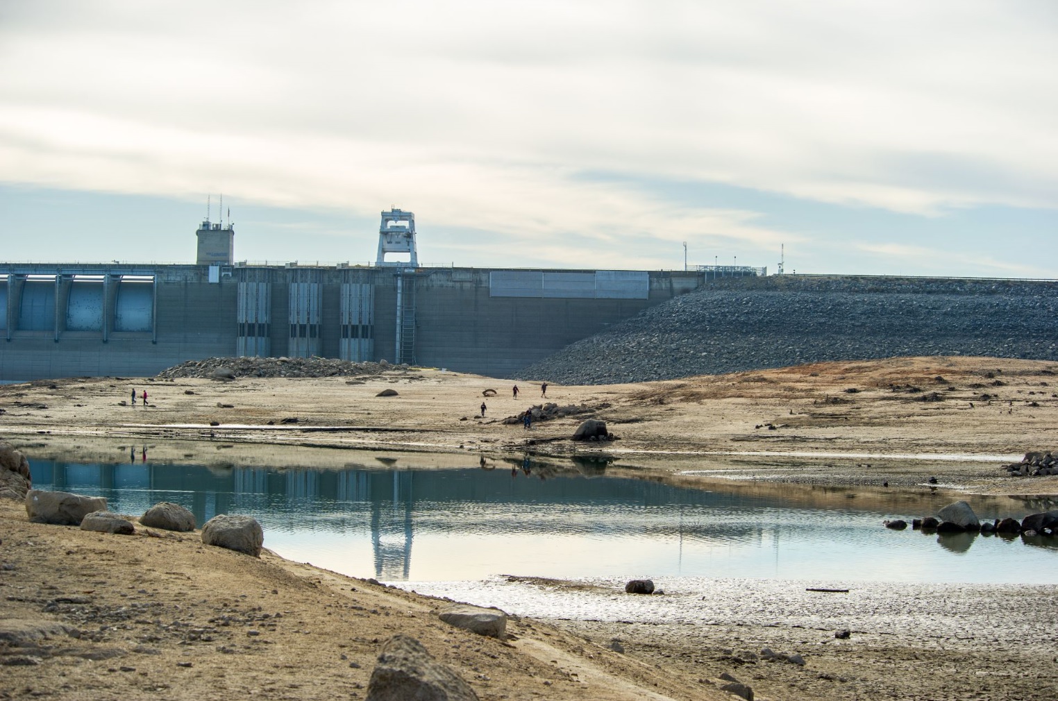 2014 年 1 月下旬のフォルサムダム。貯水率は 17% まで低下した