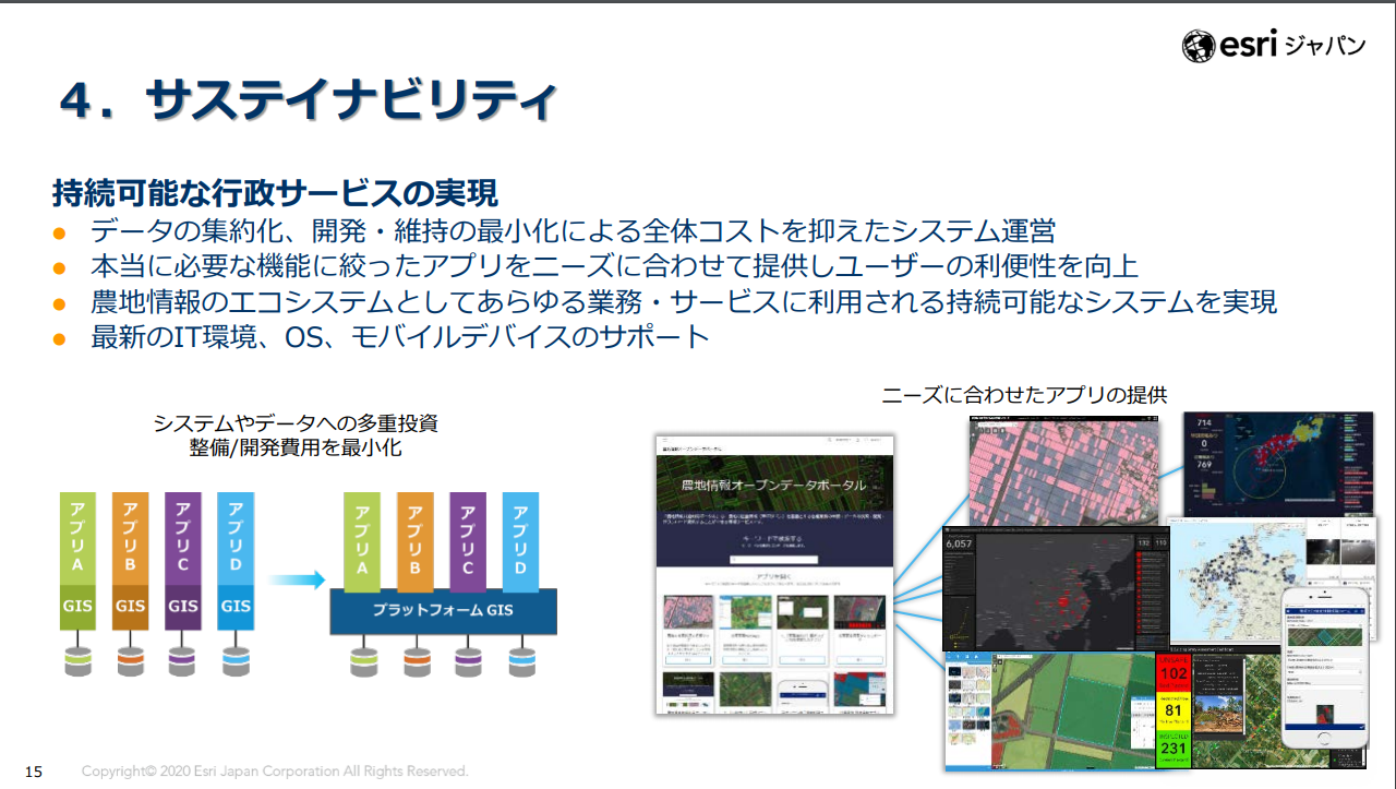 当社は、本検討会において、農業行政に係る GIS(地理情報システム) の国内外事例の紹介、プラットフォーム型 GIS の活用による組織を超えた情報連携等の提言を行いました。
