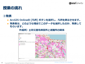 PDFでダウンロードできるGISカード、ArcGIS Online上で提供するレイヤーのほか、GISカードを使った授業を行うための手順書と、授業で生徒を評価するための評価基準もあわせて提供しますので、事前準備に時間を使うことなく簡単かつすぐに授業でお使いいただけます。