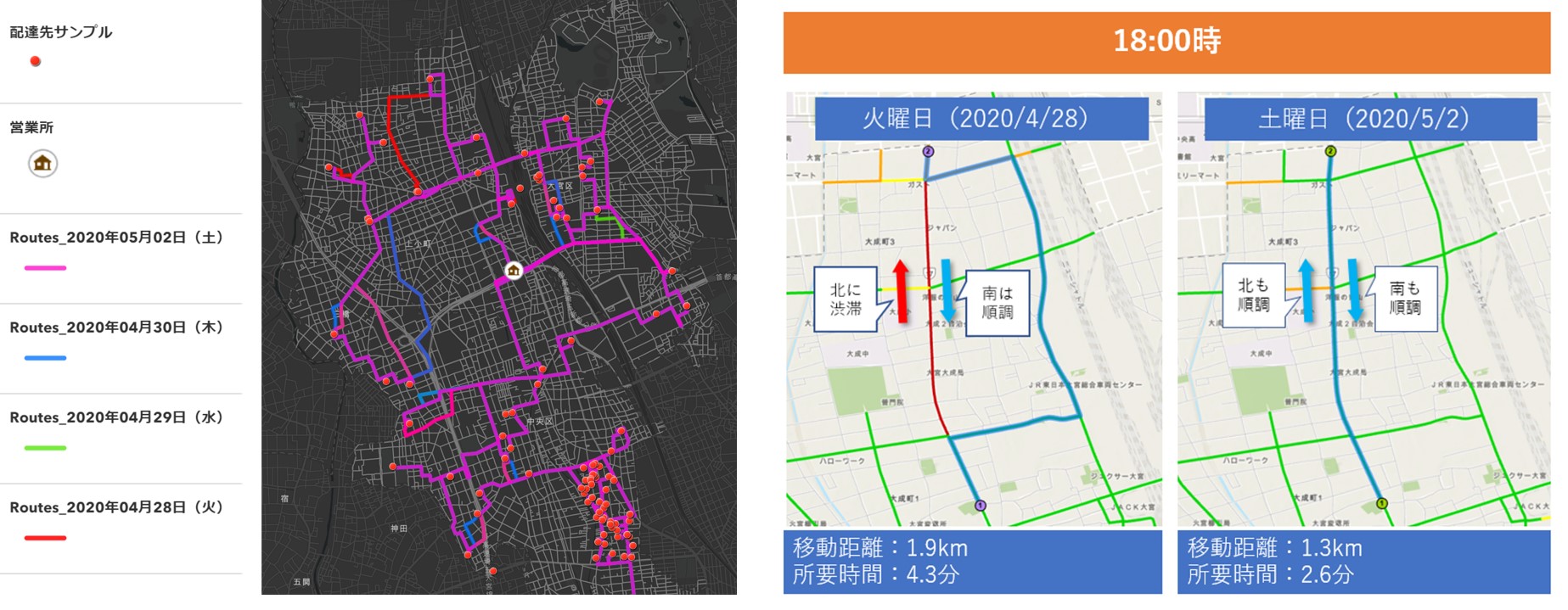 災害大国である日本において、地震や台風などの災害発生時には、迅速な被害状況の把握だけでなく、行政においては被災者の救助や物資の供給などの支援、企業においてはサプライチェーン網の維持・復旧が求められます。気象情報や自社拠点といった地理空間情報と車両通行実績データを組み合わせることで自社拠点や配送ルートへの影響の有無を推定したり、有事の際には車両通行実績を把握することで、自社拠点や従業員への注意喚起と安全の確保をスムーズに行うことや、顧客へのサービス提供の継続性を高められることが期待されます。