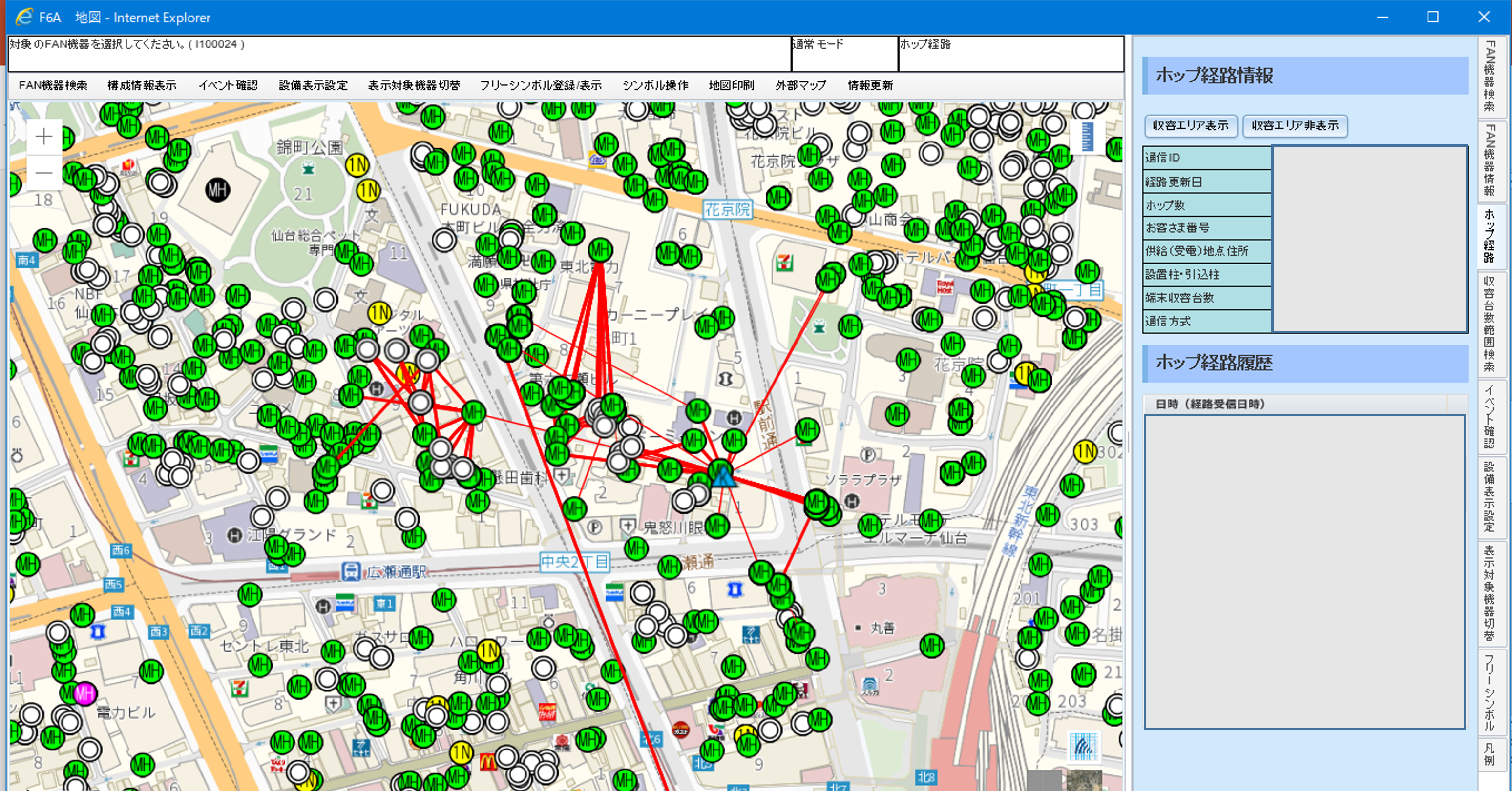 スマートメーターの保守業務には以前は複数のシステムを利用する必要がありましたが,本システムを利用することでワンストップの情報把握が可能となり保守業務の省力化が図られました。また,通信障害対応では,通信経路や通信状況,衛星画像を同一の地図画面上に表示させることで,原因予測や対策を事前に検討することが可能となりました。