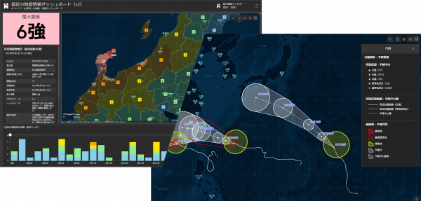 地震情報(左)、台風解析・予報情報(右)