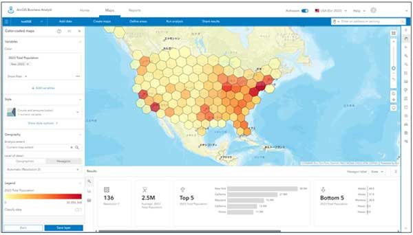カラー コード マップやスマート マップ サーチ、適合性解析などの解析対象に六角形グリッドを追加しました。本機能は BA Web Advanced でのみ使用できます。また、本バージョンでは、アメリカのみ実行可能です。