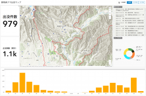 群馬県は公式サイト上で「クマ出没情報マップ」を公開。GIS技術を用いて、目撃日時や場所、被害状況などを地図上に可視化。住民や登山者が安全対策を講じやすいよう、情報は随時更新されており、危険エリアの把握や注意喚起に活用されています。
