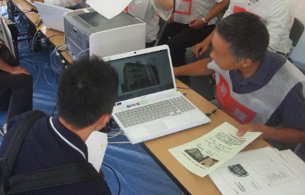 被災者の迅速な生活再建にまず必要となるのが、地震や火災、風水害などで被災した建物の被害程度を公的に証明する罹災証明書だ。罹災証明書は区市町村によって交付され、義援金や支援金、公共料金の減免などの申請の際に必要になる。この罹災証明書の交付には、建物の被害状況の判定結果に不公平が生じる、調査結果のデータ化に時間がかかるなど課題も多い。今回、訓練が行われた被災者生活再建支援システムでは、迅速かつ公平な罹災証明書交付のため、建物被害の判定基準を明確化し、各世帯の建物被害等のデータを電子地図上で一元管理できるようになっている。