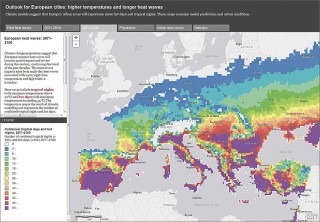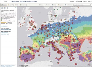 将来、ヨーロッパの多くの都市を猛暑が襲う・・・。欧州環境局(EEA:European Environment Agency)が作成した 「ヨーロッパ都市部の猛暑リスクマップ」と題されたWebマップが、Eye On Earth(アイ・オン・アース)のWebサイトに掲載されている。 掲載から24時間で10万アクセスを記録したこのマップからは、今後ヨーロッパの都市部で夏日や熱帯夜が大きく増加することが読み取れる。 地球温暖化にともなう気候の変化に多くの人々が興味を抱いているこが、マップへの反響の大きさにつながっているようだ。