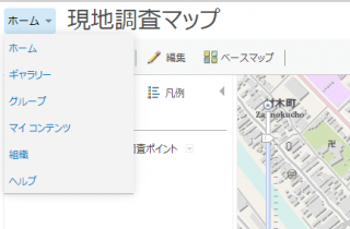 ArcGIS Online へサイン インした後、ウェブ サイトの右上に表示されているユーザ名をクリックすることで、プルダウン メニューから「マイ プロファイル」、「ヘルプ」、「サイン アウト」の各リンクにアクセスできます。また、ArcGIS.com マップ ビューア アプリケーション左上の「ホーム」をクリックすると、「マイ コンテンツ」や「ギャラリー」、「組織の管理ページ(組織向けプランの場合)」に素早くアクセスできます(図 1)。
