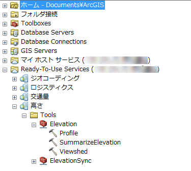 ArcGIS Online でホストされている標高データを用いて断面図(Profile)や可視領域(Viewshed)を計算するためのジオプロセシング ツールを ArcGIS for Desktop から利用できるようになりました。これらのツールは、ArcGIS for Desktop で ArcGIS Online にサイン インすると、カタログ ウィンドウの「Ready-To-Use Services」内に自動的に表示されます。なお、解析の対象となるフィーチャ数に応じてサービス クレジットを消費します。