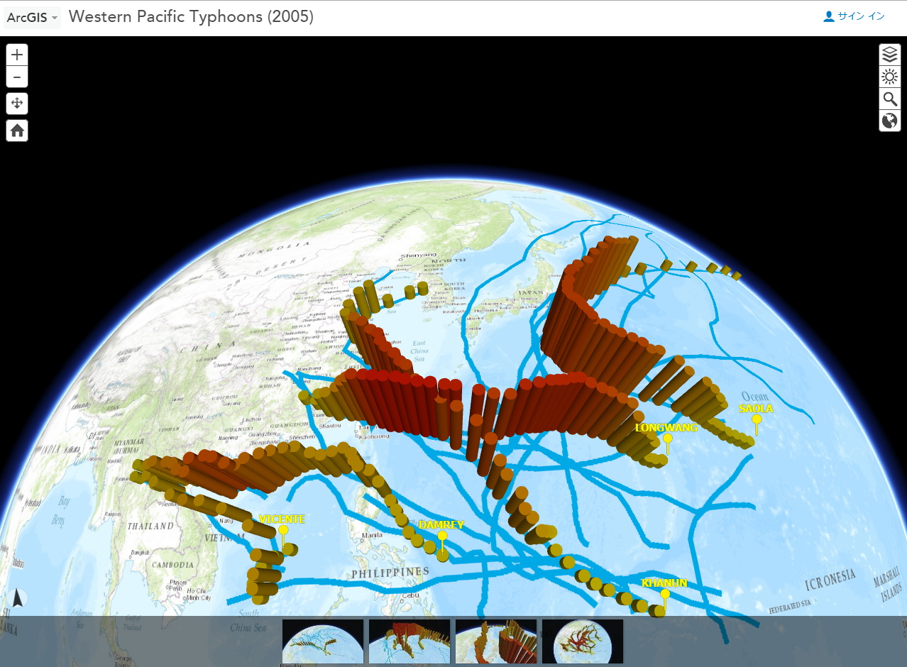 注 1)現在、3D シーン ビューア は開発中の ArcGIS Online コンポーネントであり、「ベータ版」としてご提供します。ベータ版のコンポーネントは、機能やドキュメントが不完全な場合や、公表されない小さな変更を含んでいる場合があります。