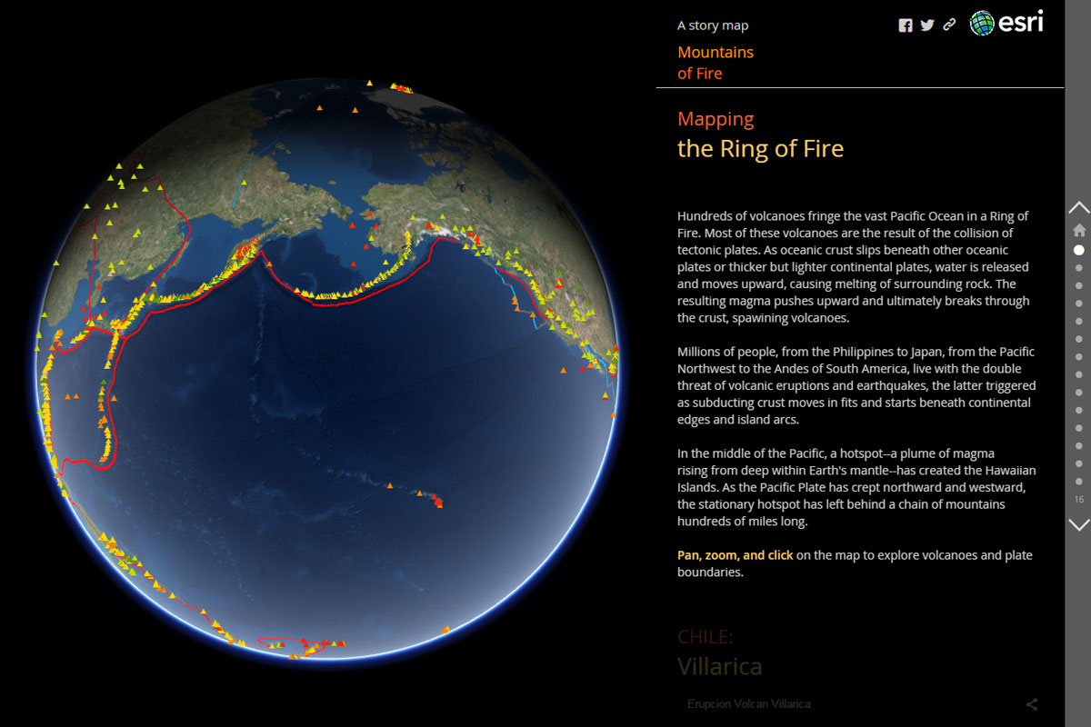 活火山は、プレート境界に沿って密集し、赤く燃えるネックレスのように地球各地に存在しています。昨年噴火した火山を挙げてみても、御嶽山、阿蘇山、ハワイ島キラウエア火山、アイスランド バールダンブンガ火山など複数あります。一方で、数世紀にわたり活動を休止している活火山も存在しています。このストーリーマップでは、最も危険とされる世界の活火山を紹介します。