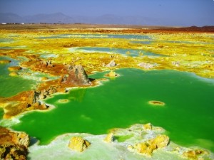 ダロル火山は、普通の火山ではありません。一帯にあるクレーターは、濃縮された硫酸によってできたため池、鮮やかな色の結晶の塔、尾根によってできています。PH(水素イオン)レベルは、最近の計測で「2」から最も酸性度の強い数値である「0」へと下がりました。これはマグマが上昇しており、また火山噴火の兆候を示しています。