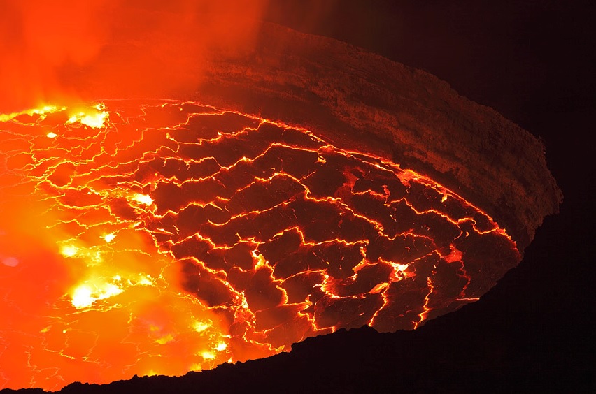 ダナキル砂漠は最も熱い場所であるだけでなく、その低い土地と火山活動でよく知られています。この場所では、地殻変動により、地殻が引っ張られることによって薄くなり、巨大な地溝帯を形成しています。これが、アフリカ大陸で最も低い地点ダナキルをつくります。地殻が引っ張られ地殻が割れることで亀裂ができ、その下に有る赤く熱いマグマが上昇し、火山を形成しています。