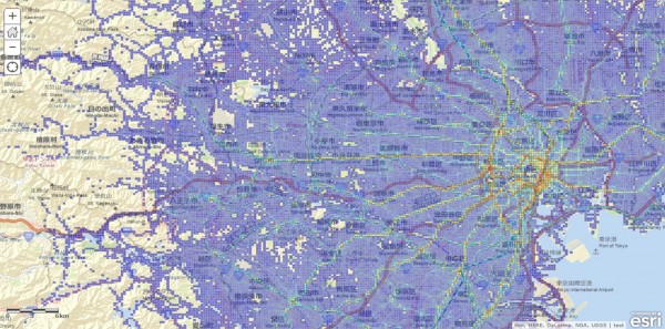 *2 ArcGISは、Esri社が提供するGIS 製品、サービス群の総称です。今回の高精度な予測結果の可視化には、クラウドサービスであるArcGIS Onlineを採用しました。ArcGIS Online では、背景地図やデータコンテンツを自由に変更することができるほか、様々なデバイスに対応しています。GISデータを可視化するツールでありながら、同時にGUI ベースでWebアプリケーション作成機能を備えており、設定のみでアプリケーションを構築、公開することが可能です。