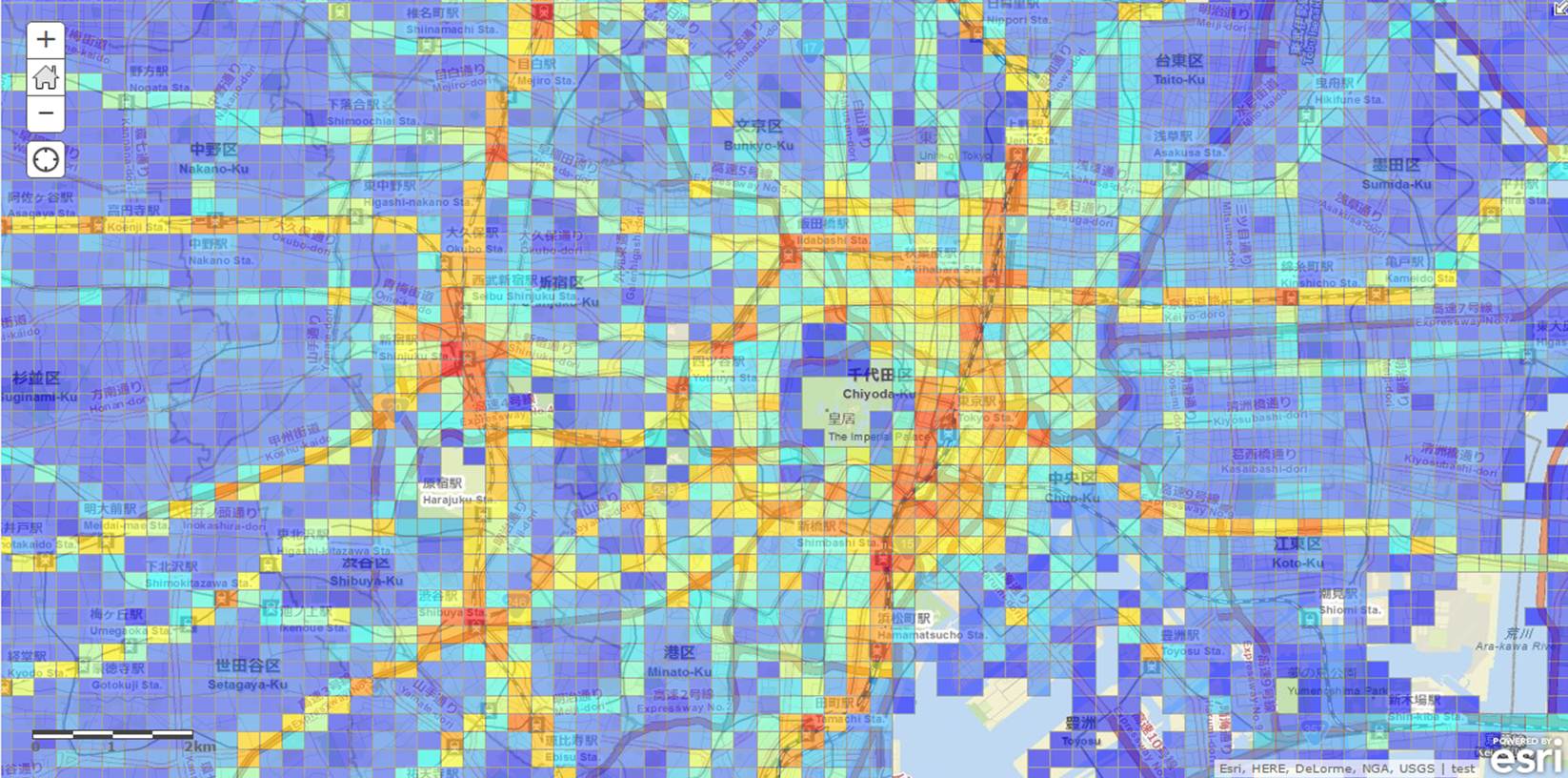 *5今回の技術検証は、東京大学空間情報科学研究センターとの共同研究プロジェクト「人流データを利用したタクシー配車効率化に関する研究」として、同センターが個人を特定できないように加工して提供している人流データを使用しました。