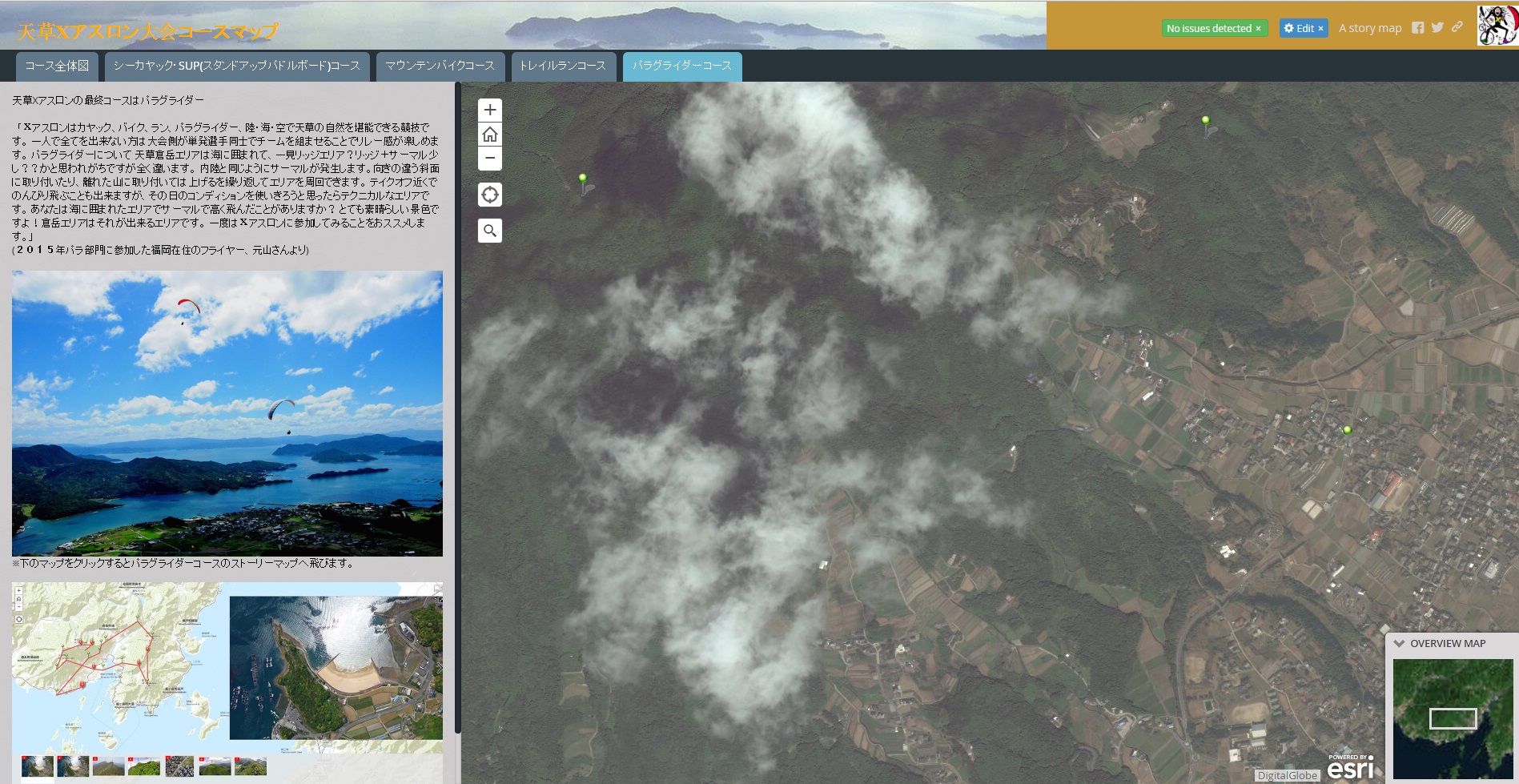 ※上の画像をクリックすると「Storymap : 天草Xアスロン パラグライダーコースマップ」へ飛びます。