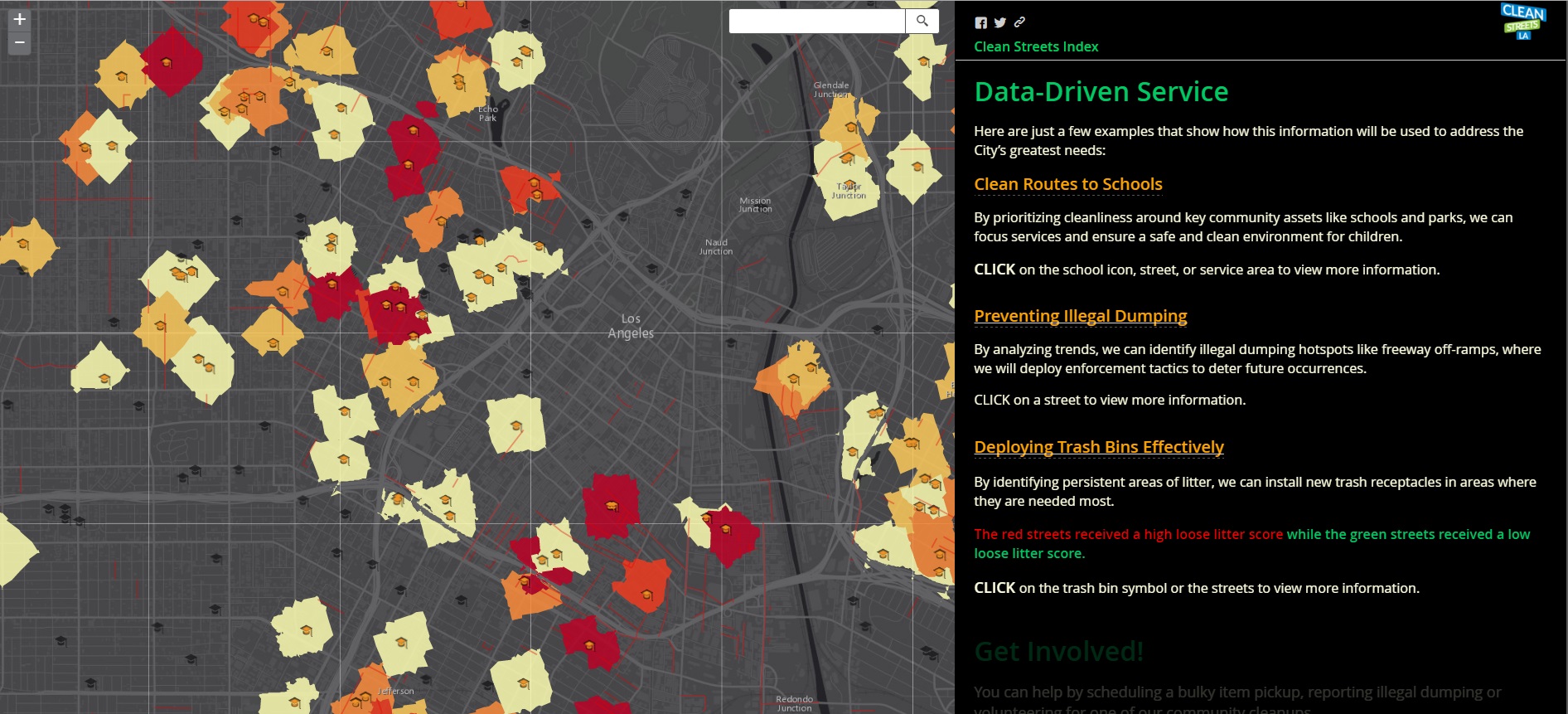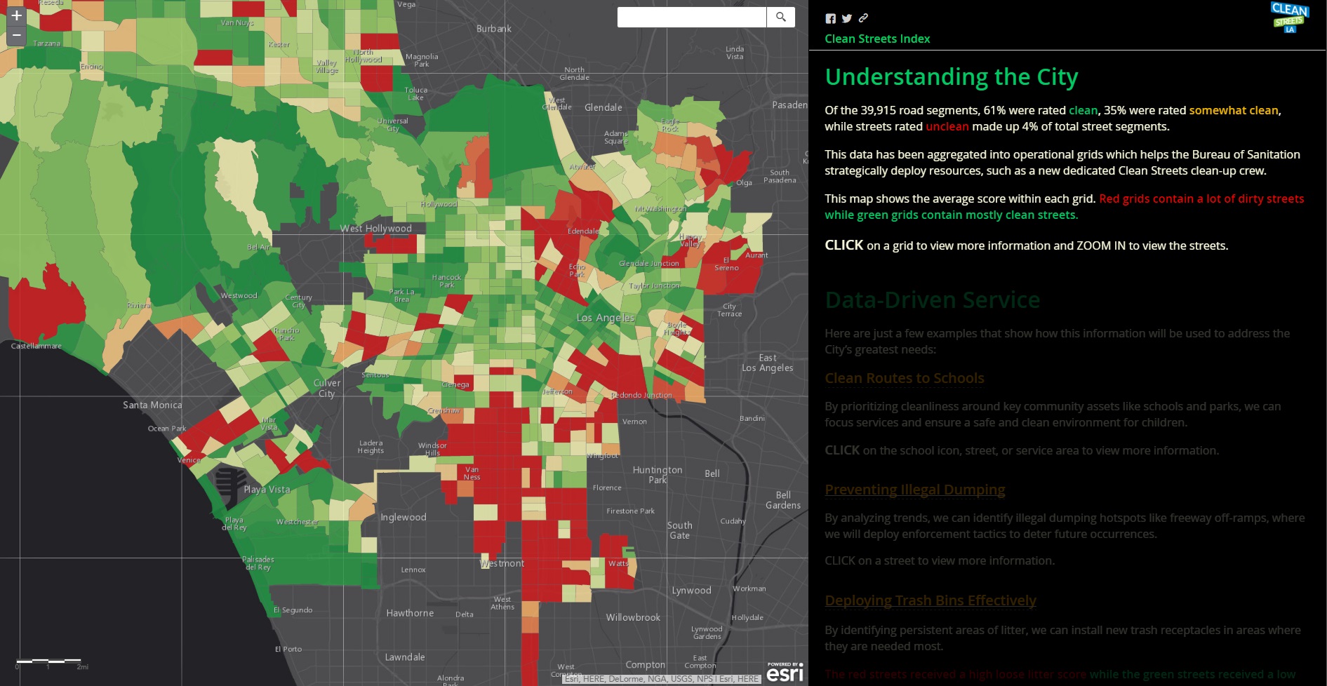 本ストーリーマップでは、ロサンゼルス市のエリック・ガルセッティ市長が4年(2015-2019年)をかけて取り組むことを宣言したクリーン・ストリート(清掃業務)プロジェクトを紹介します。