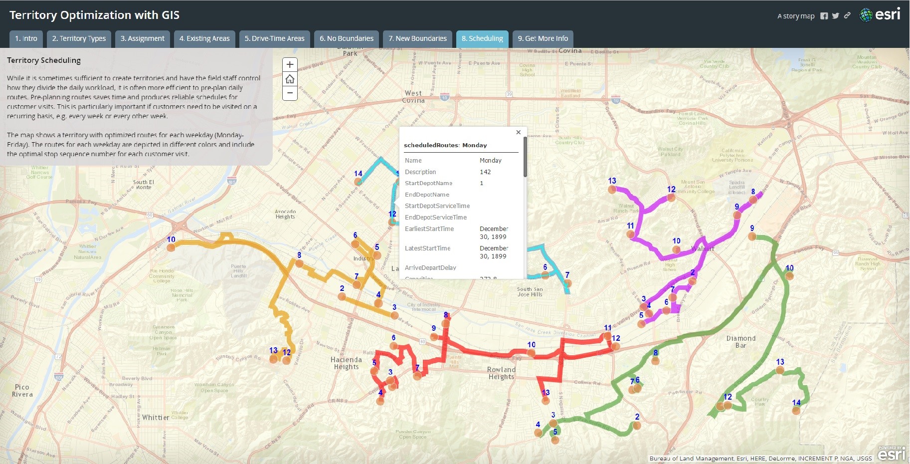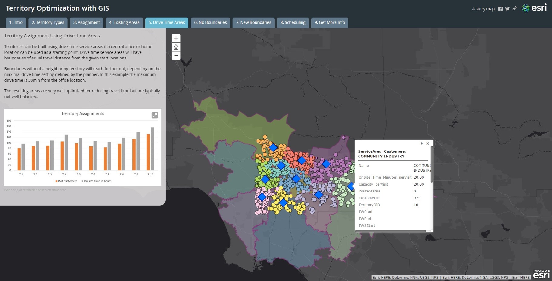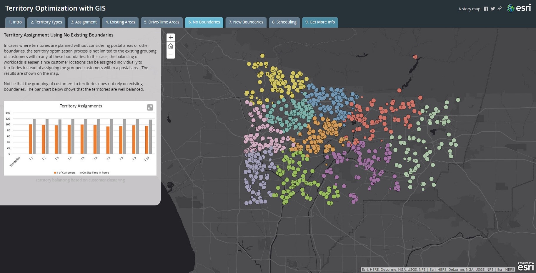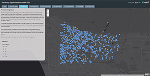 今回紹介するマップはArcGISOnlineの「マップジャーナル」という機能を使って営業テリトリーの最適化について解説しています。