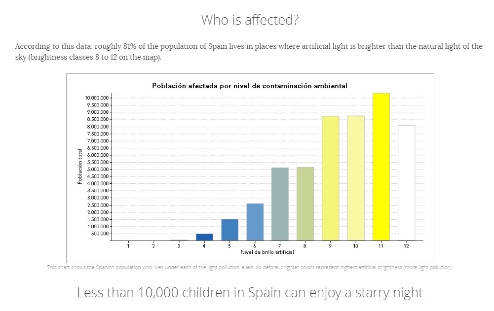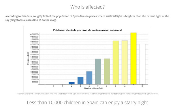 スペイン人口の約81%が人口の光が自然光よりも強いエリアに住んでいます。わずか1万人弱の子供達が星空を楽しむことができている状況です。