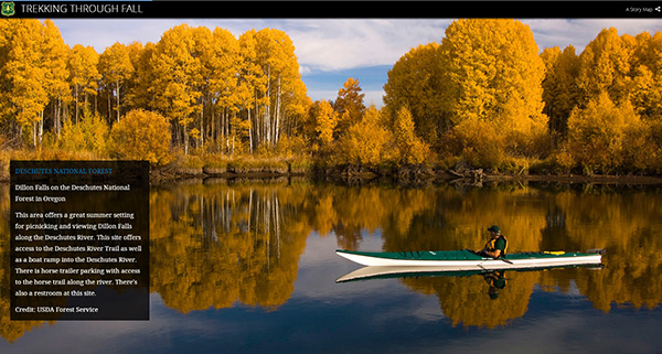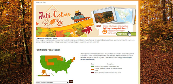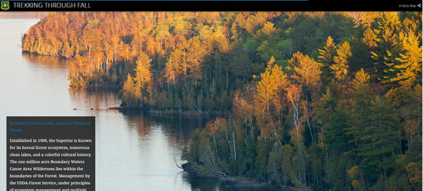 秋が深まるにつれ日本列島を錦色に染めている紅葉ですが、今回はアメリカの紅葉の様子を見てみましょう。米国フォレストサービスが「最高の旅に出かけよう!」と米国全土をくまなく巡るルートで、10箇所のナショナル・フォレストを紹介しています。最後には、アメリカの紅葉前線を確認できるマップもあります。ストーリーマップでアメリカンな紅葉狩りをお楽しみください。
