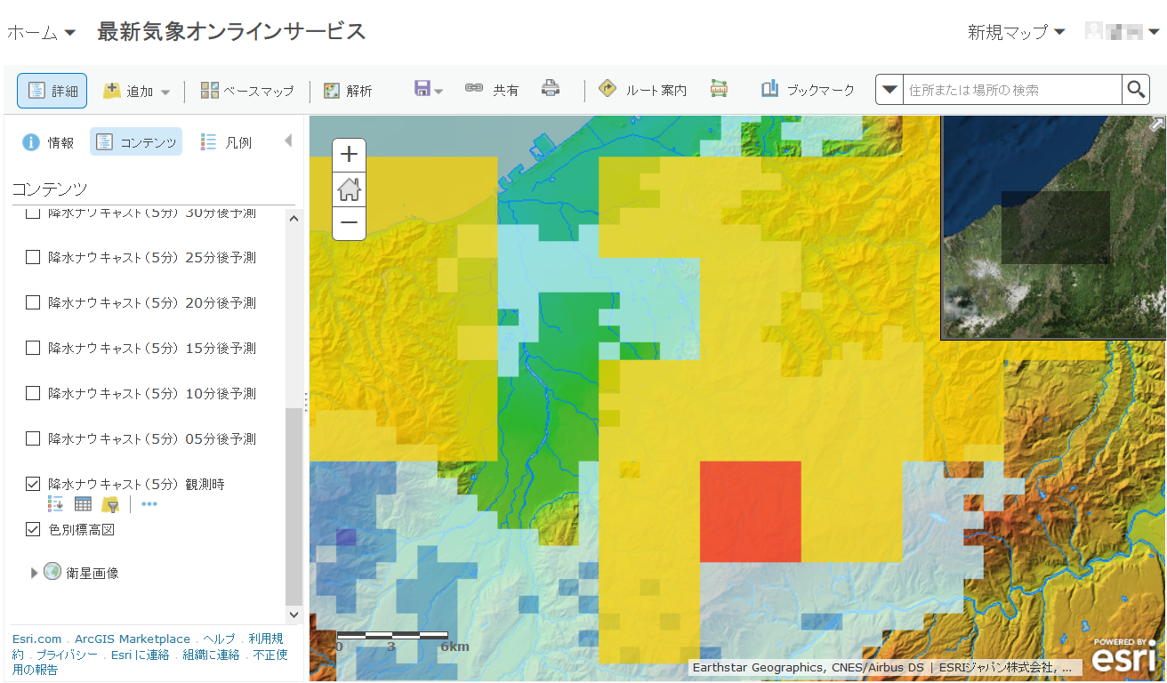地理情報システム(GIS)ソフトウェア国内最大手*のESRIジャパン株式会社(本社:東京都千代田区、代表取締役社長:正木千陽)は、クラウド GIS である ArcGIS Online (アークジーアイエス オンライン)ユーザー向けに、気象庁による気象情報を配信する Web サービス「気象オンラインサービス」のベータ版の提供を開始しました。本リリースでは、「降水ナウキャスト(5分)」と「土砂災害警戒判定メッシュ情報」の 2 種類の情報を配信いたします。当面は、ArcGIS Onlineユーザー向けに無償サービスとして提供いたします。