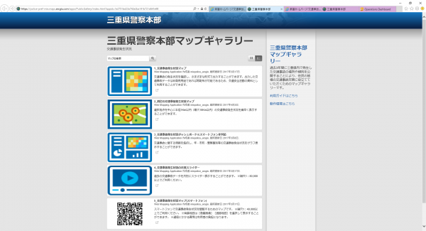 現在「三重県警察本部マップギャラリー」には、パソコン利用者向けサービスとスマートフォン向けアプリを含め、5 種類の Web マップが公開されています。運用期間中、システムの機能や公開する情報の内容について継続的に検討・見直しを行い、バージョンアップを重ねながら、交通事故防止に貢献できるシステムの構築を目指していきます。