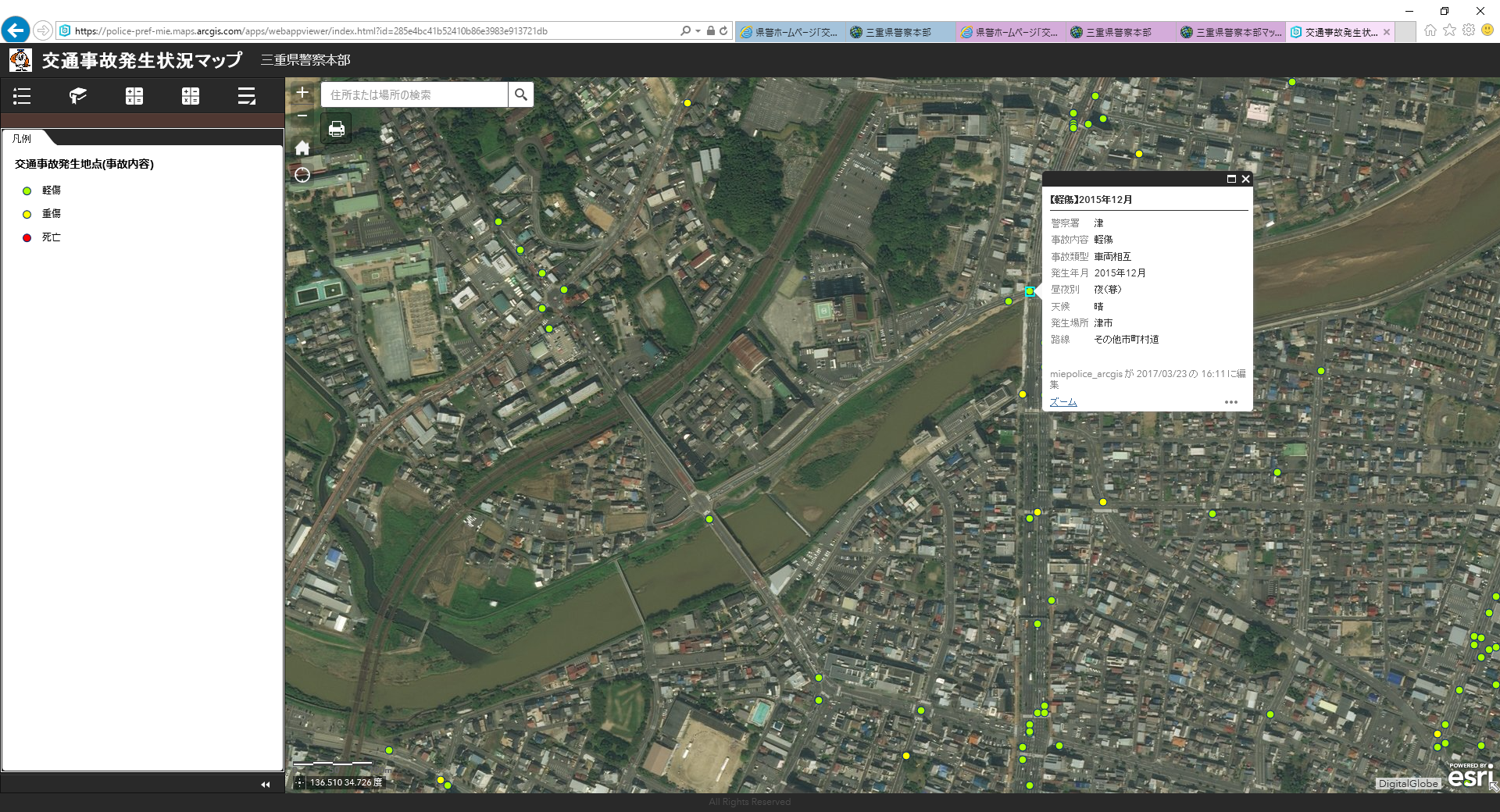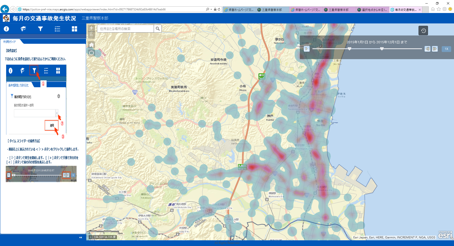 三重県警察本部(以下「三重県警」という)は、ESRIジャパン株式会社(本社:東京都千代田区、代表取締役:正木 千陽)のクラウドサービス ArcGIS Online を利用した「交通事故状況公開システム」の運用を開始しました。