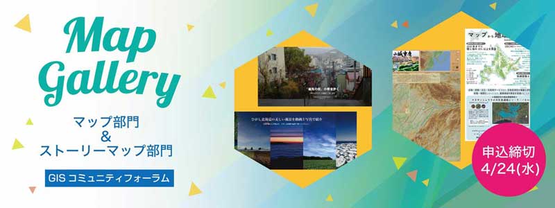 マップギャラリー開催!出展募集! 5 月 23 日、 24 日開催の第 21 回 GIS コミュニティフォーラムにおいて、マップギャラリーが開催されます。 通常のマップに加え、今回もストーリーマップを募集いたします。日頃...