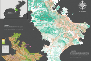 GISコミュニティフォーラムにて開催されたマップコンテストで第5位を獲得した作品「凸凹地図&傾斜分布図でみる横須賀市 -"人口減少問題"と地形との関係について-」