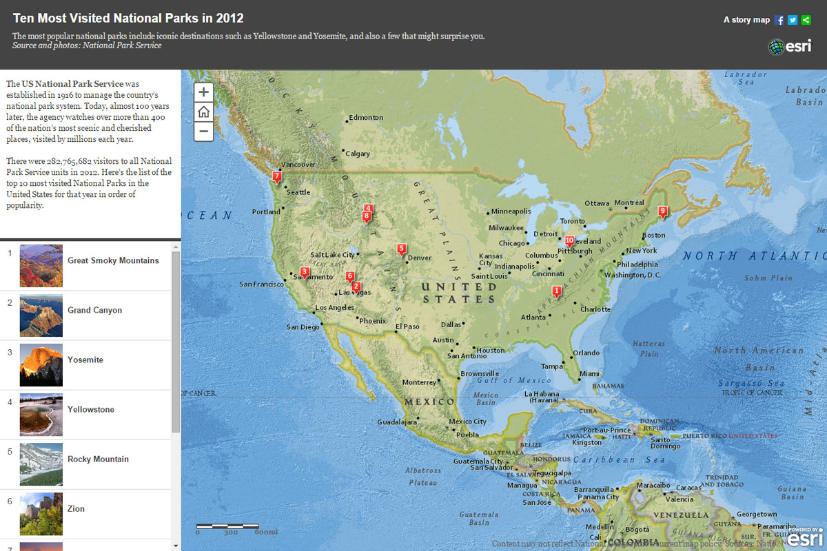 2012年の来場者数をもとに、アメリカ国立公園の人気ランキングを紹介しています。