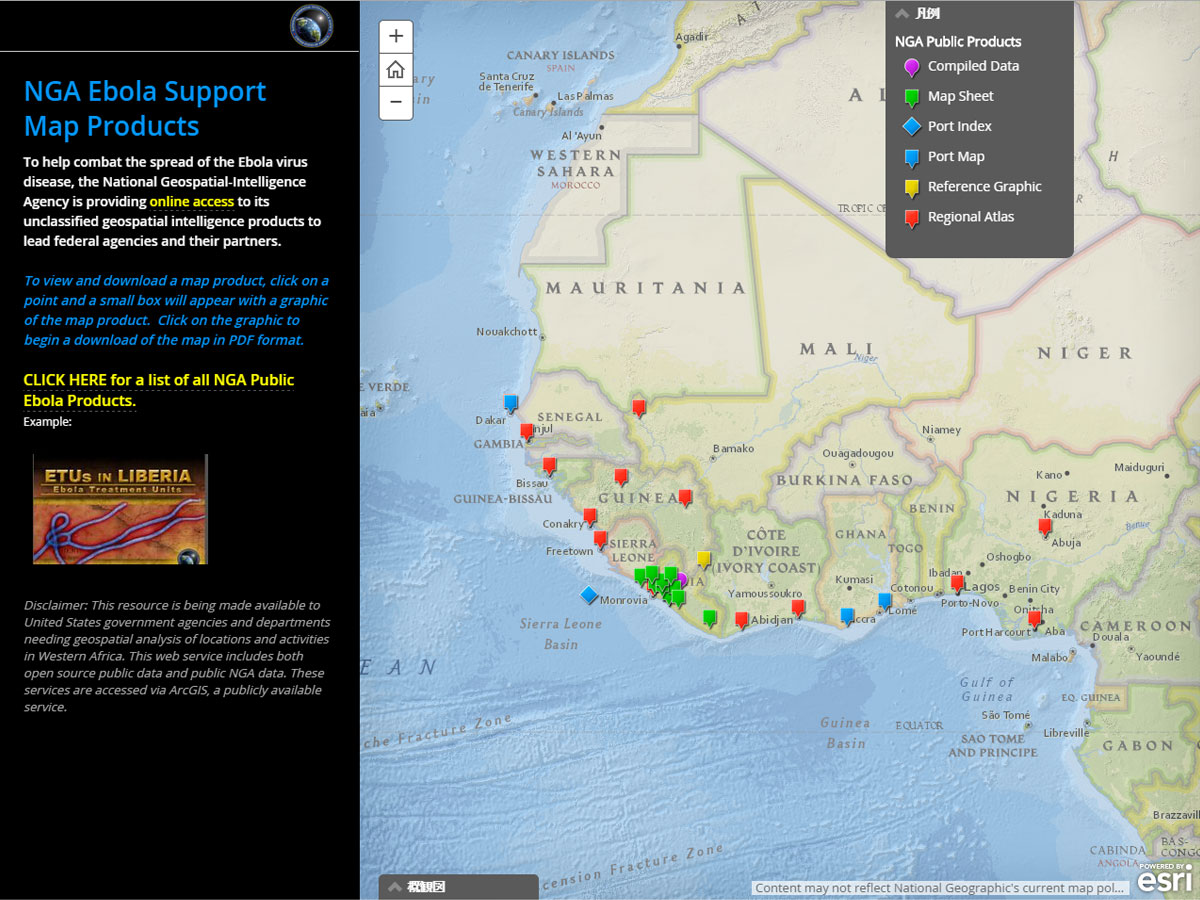 米国国家地球空間情報局(NGA:National Geospatial-Intelligence Agency)はエボラ出血熱の抑止活動を支援するために、地図を作成し公開しました。