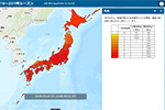 2014-2015年シーズンの全国版インフルエンザ流行状況をマップにしました。時系列に表示するタイムスライダー付きのWebマップです。