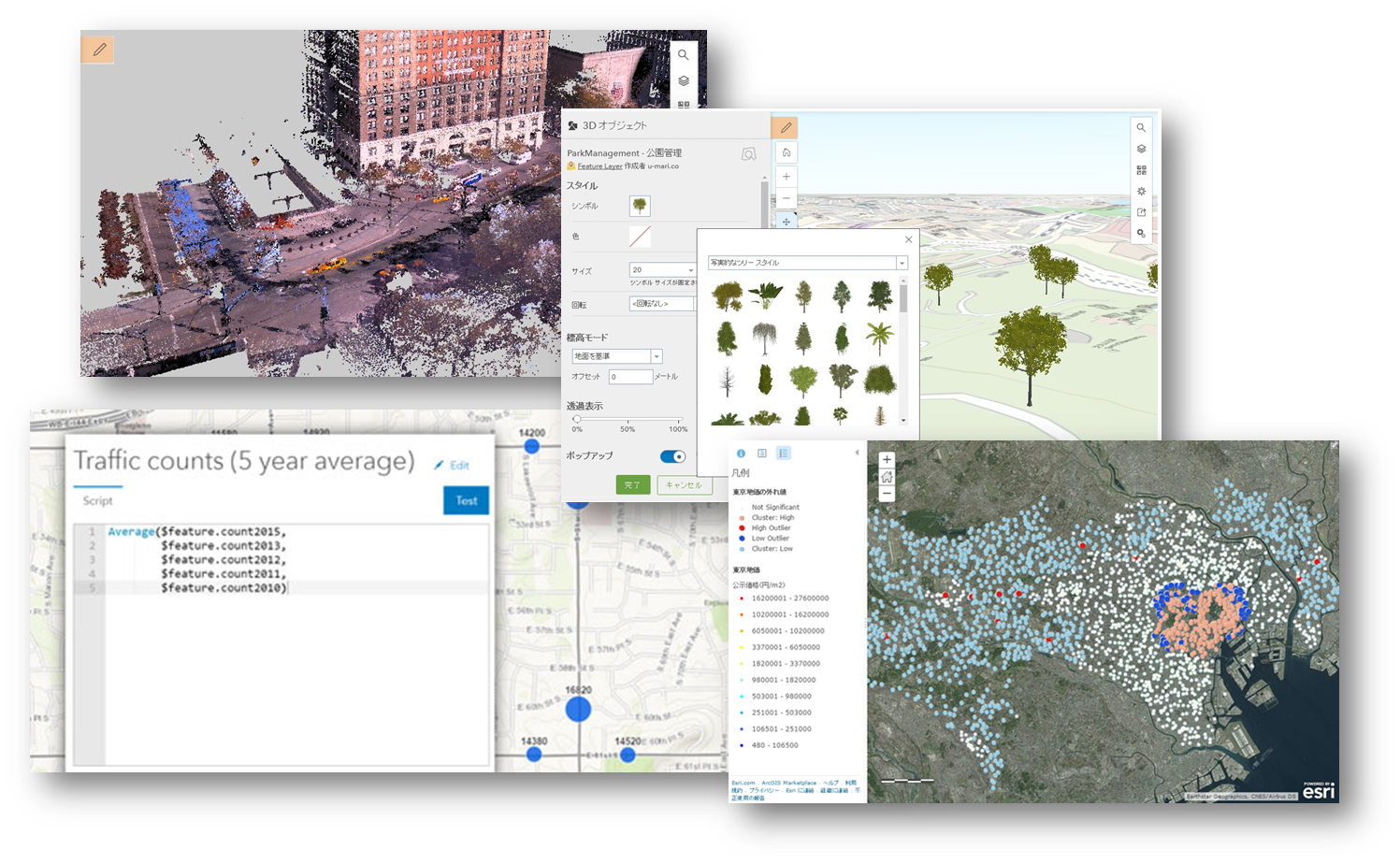 今回のバージョンアップでは ArcGIS プラットフォーム標準の独自のビジュアライゼーション、ラベル作成のためにデザインされた軽量な式言語である Arcade がサポートされたほか、点群レイヤーや標高クエリ API など...