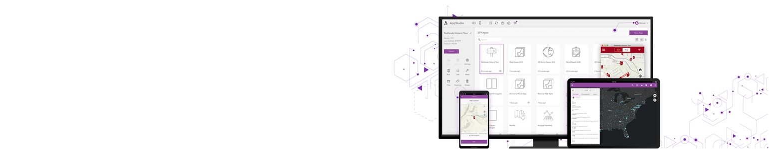 ArcGIS AppStudio は、ネイティブ アプリを作成するためのノーコード・ローコード ツールです。これにより、組織内で配布したり、アプリストアに公開できるアプリをすばやく構築できます。