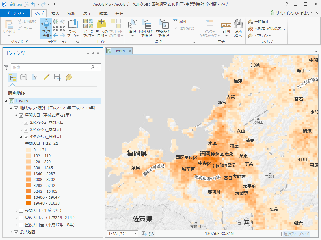 平成 22-21 年 地域メッシュ統計 昼間人口 |