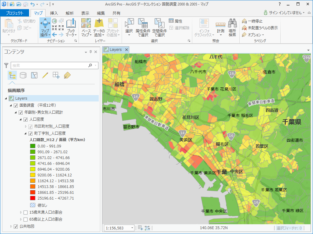 平成 12 年 国勢調査 町丁・字等別集計 人口密度 |