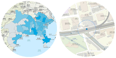 現地調査業務などネットワークに接続できない環境においても、あらかじめデータをデバイスにダウンロードしておくことでオフライン環境でも地図の閲覧、データの編集、ルート検索、住所検索などの処理を実行することができます。オフライン環境で編集したデータは、ネットワークに接続できる環境でサーバーのデータと同期することも可能です。