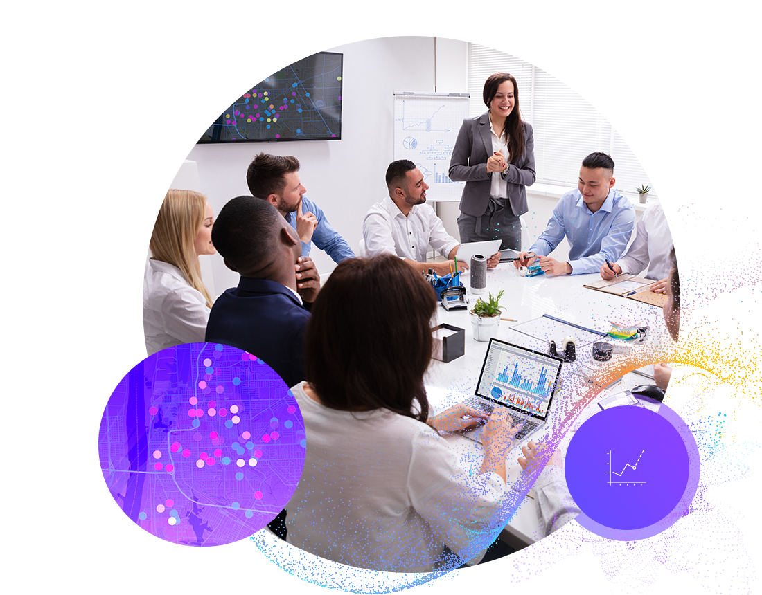 屋外で活動する調査員や現場作業者、オフィス内で働く従業員や管理職、顧客、市民などの多くの人々が場所や位置に関連する情報を扱っています。