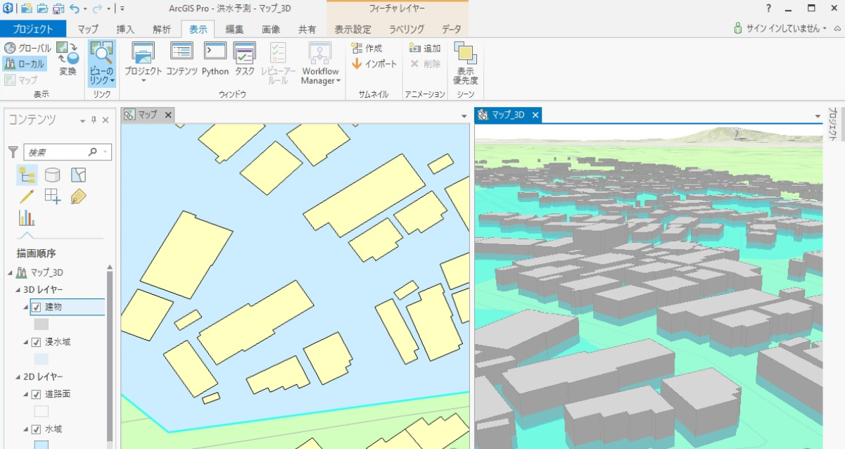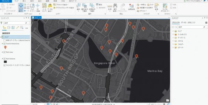 ArcGIS Pro は、ArcMap の後継となる次世代デスクトップ GIS 製品です。リボン インターフェイスにより優れた操作性を実現しており、3D に関する機能がエクステンション無しで利用可能なことや、親和性の高いクラウド GIS 製品 ArcGIS Online で成果を Web で簡単に共有できるなど、ArcMap にはないメリットがあります (詳細は「ArcGIS Pro の特長」を参照)。