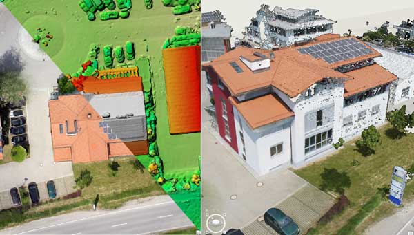 撮影データを建設現場の詳細地図や複雑な都市景観モデル、広域な地域のモザイク画像など現実世界の表現に変換します。オルソモザイク画像や標高データ、点群、3D モデルなど多次元のプロダクトを作成できます。