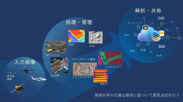 ドローンや航空写真、衛星画像、過去のフィルム画像を視覚的に美しい、地理空間的に正確な地図やモデルに変換します。