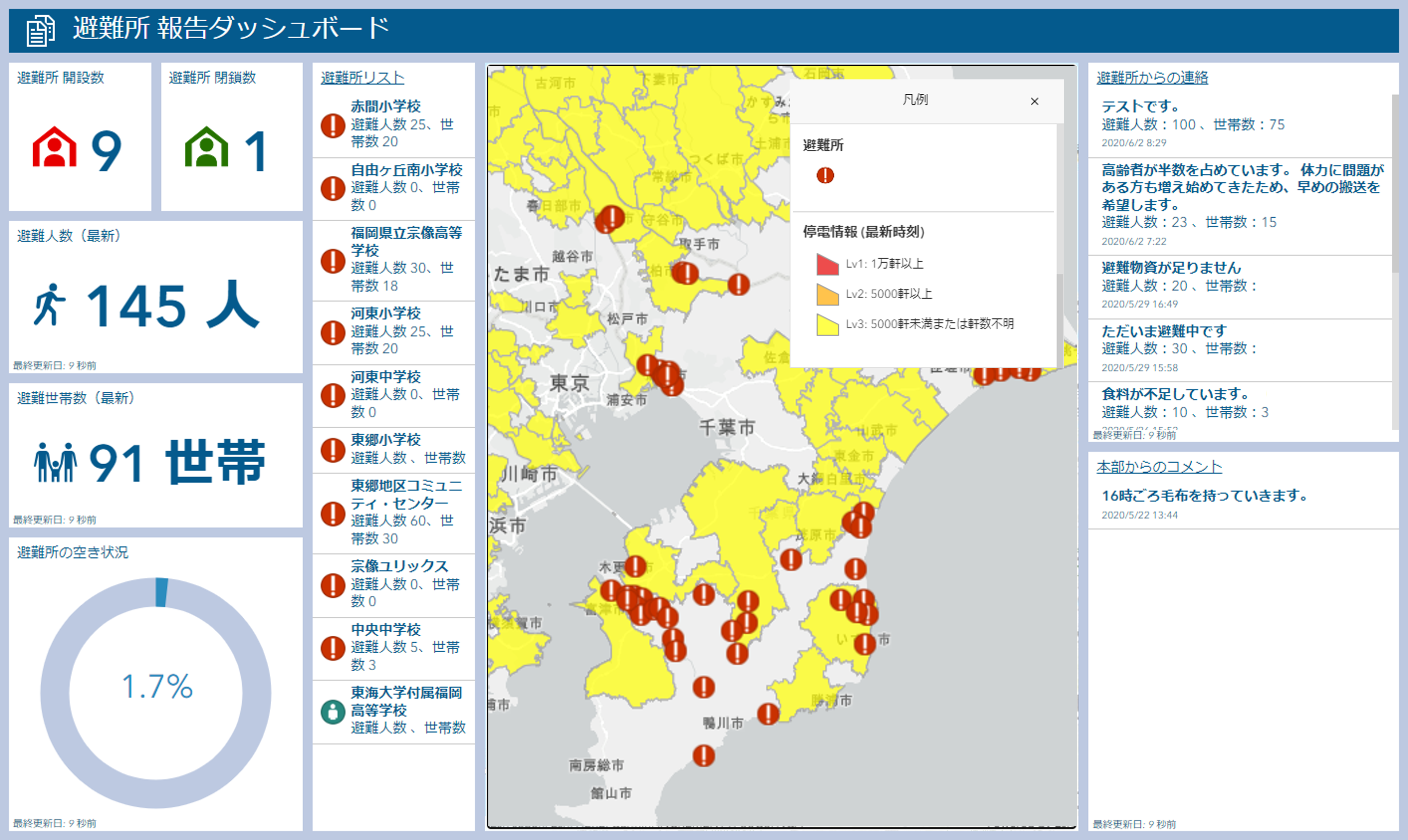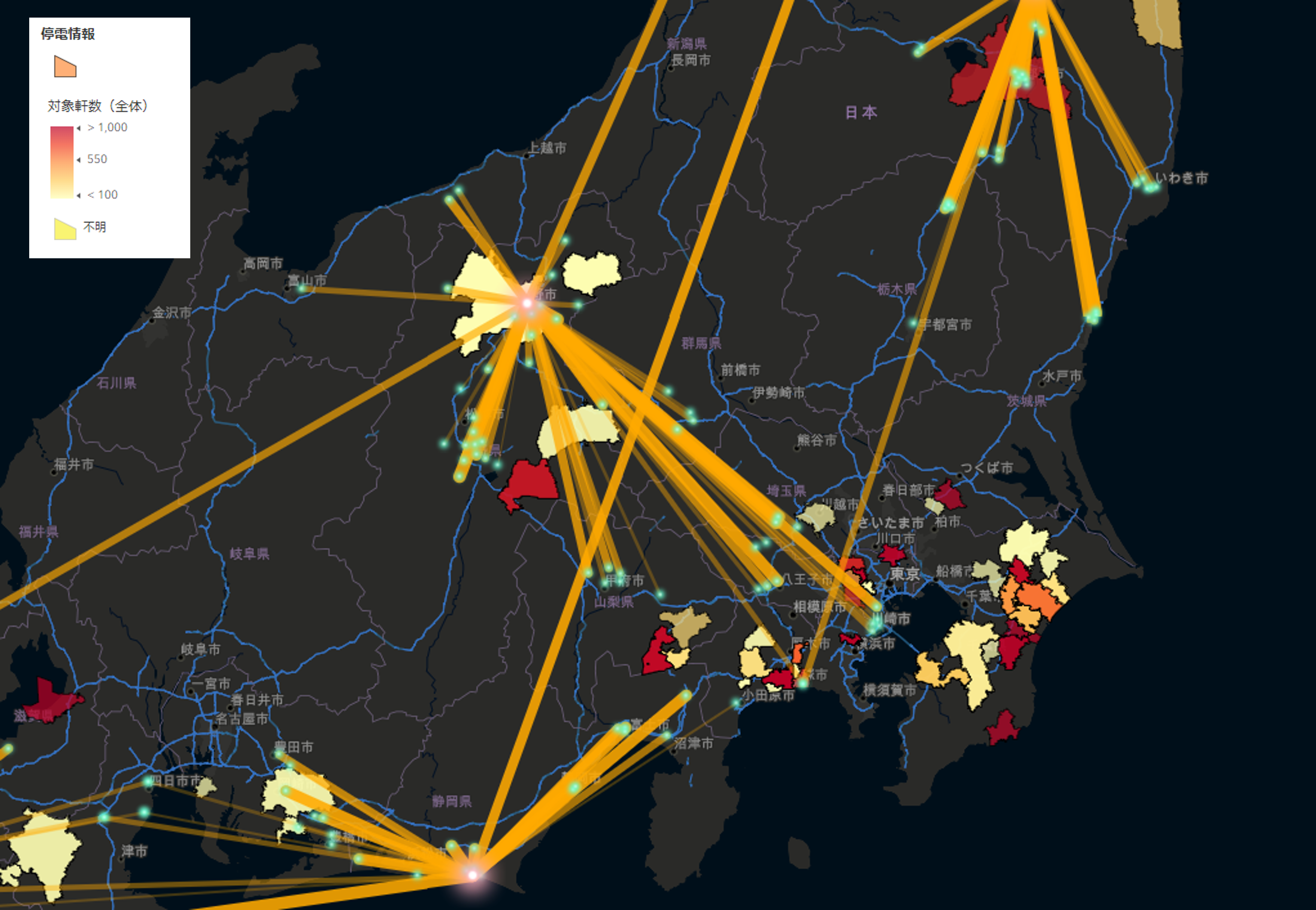 | 停電情報 | 停電情報 (最新時刻) | 5 分 | 市区町村 | 現在発生している停電情報を把握できるレイヤー |