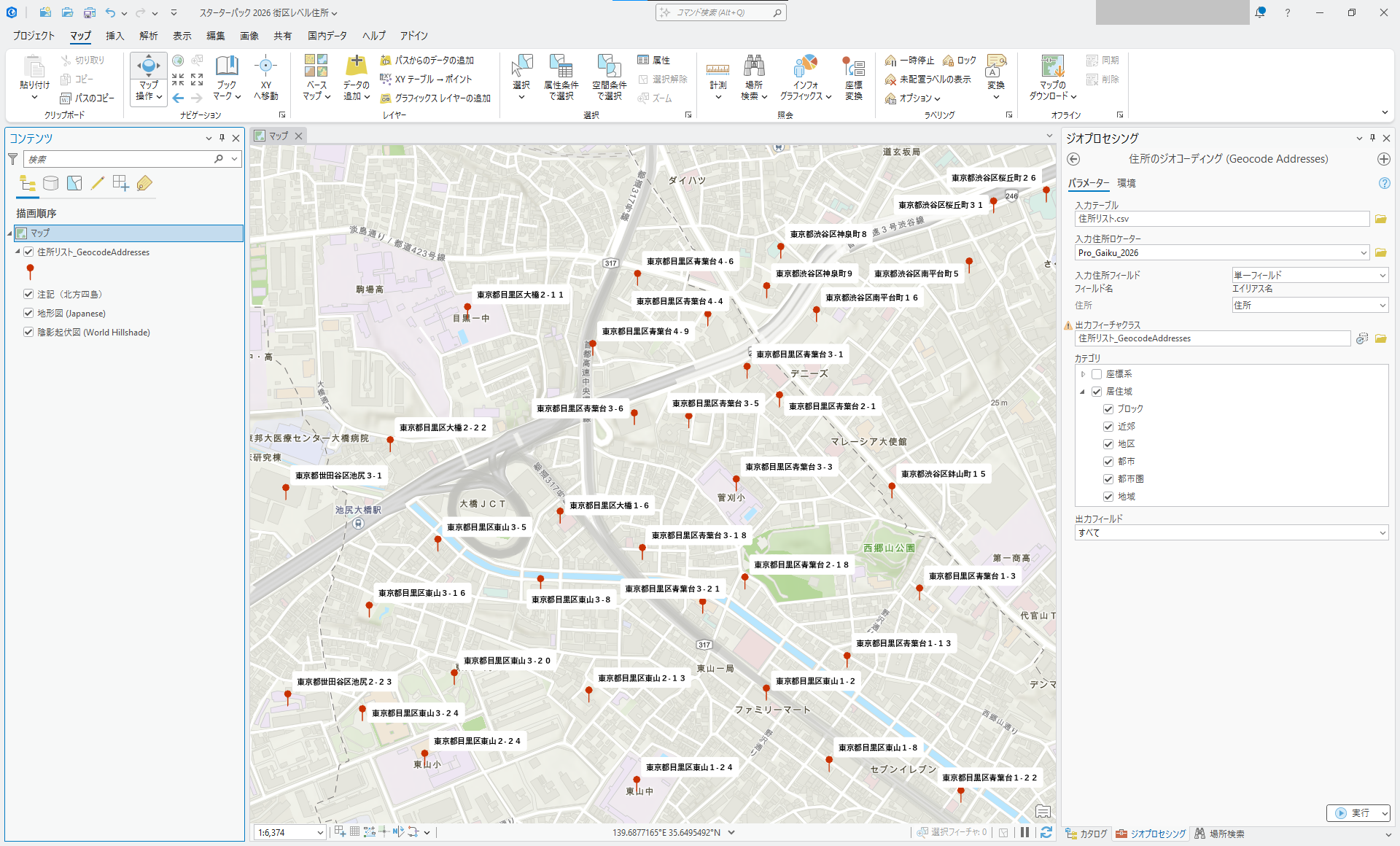 ArcGIS 標準の多彩な住所ジオコーディング機能