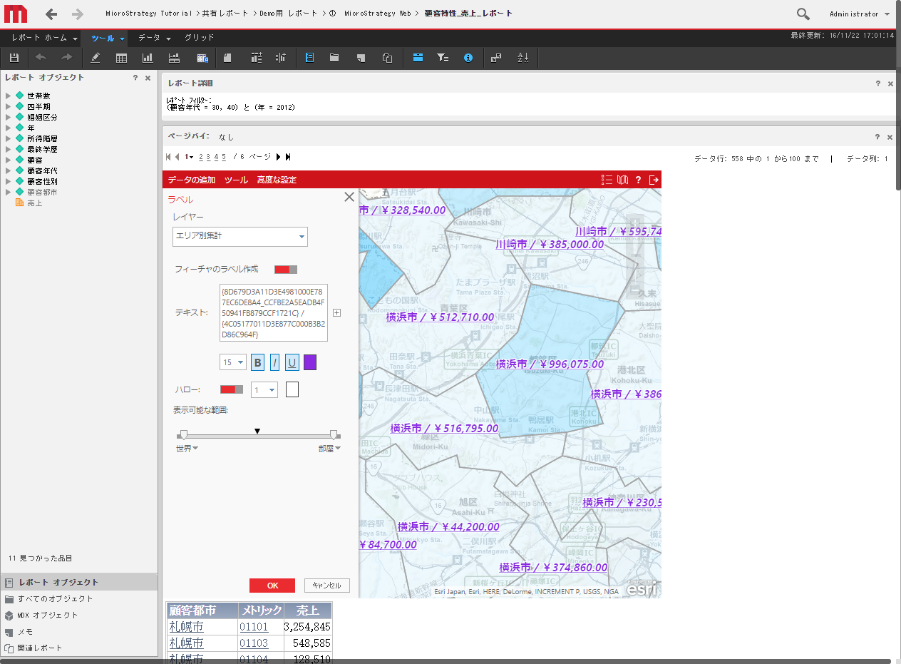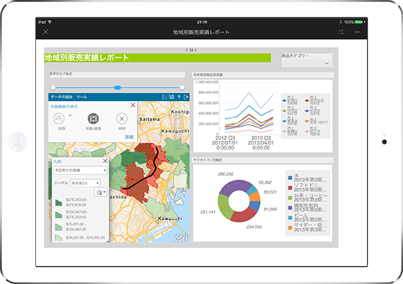 MicroStrategy 上のデータを様々な表現で地図上に可視化できることに加えて、地図上のデータを選択するなどの地図を利用した解析を実行することで、既存のレポートのグラフ・表だけでは得ることが難しい地理的特性を把握し、分析に活用することができます。