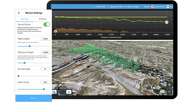 撮影用途に合わせた飛行プランのテンプレートを提供しており、ドローンの飛行高度やジンバル角、オーバーラップやサイドラップ率も細かく調整が可能です。