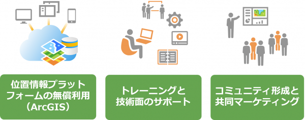 ※ Esri Startup Program の詳細については米国 Esri 社の Esri Startup Program をご参照ください。