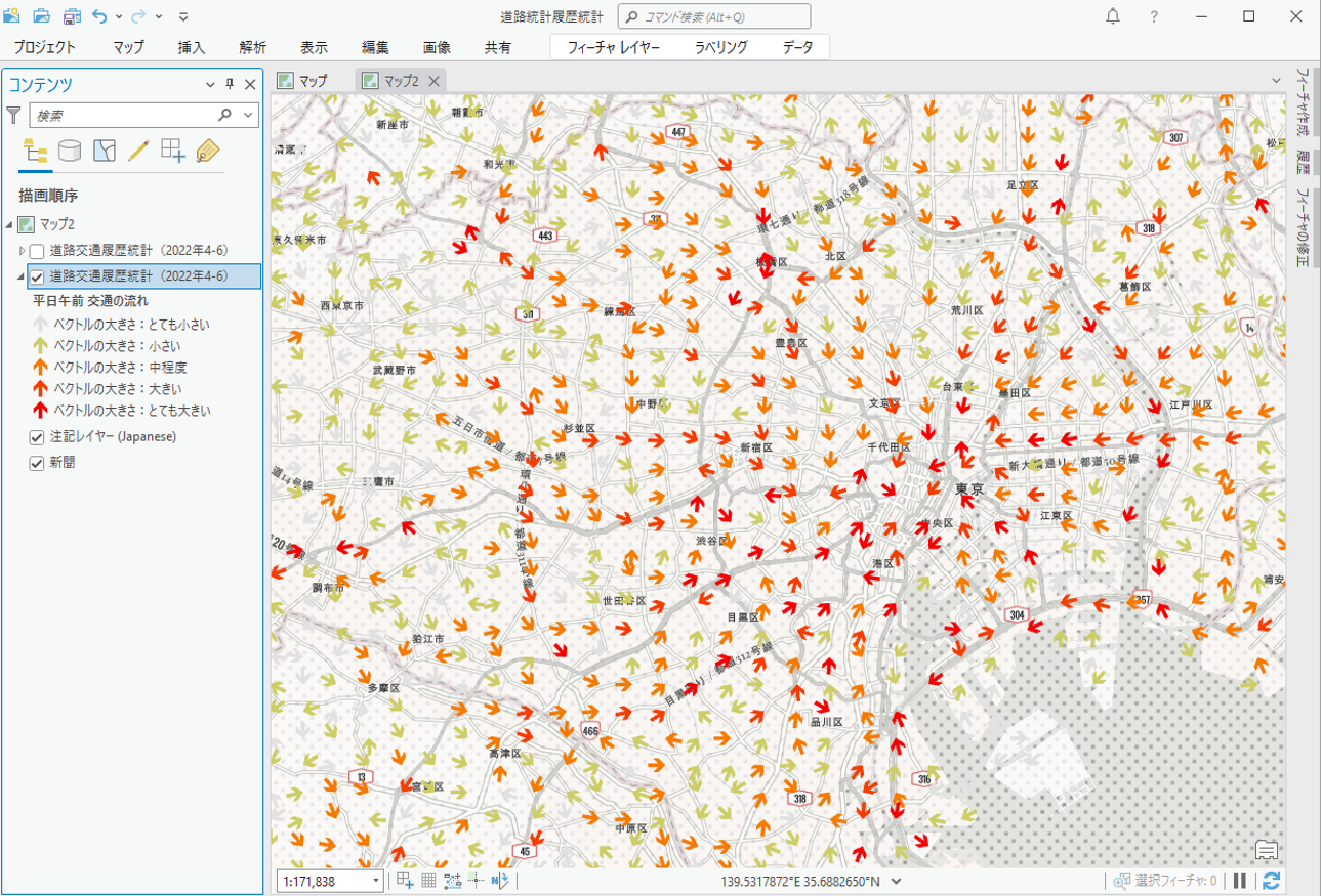 ArcGIS Geo Suite 履歴交通量付き道路網